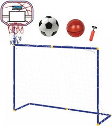 Rozmer bránky 55x88xx45 cm, výška koša 87 cm, priemer lopty na futbal 14 cm a priemer lopty na basketbal 12 cm.