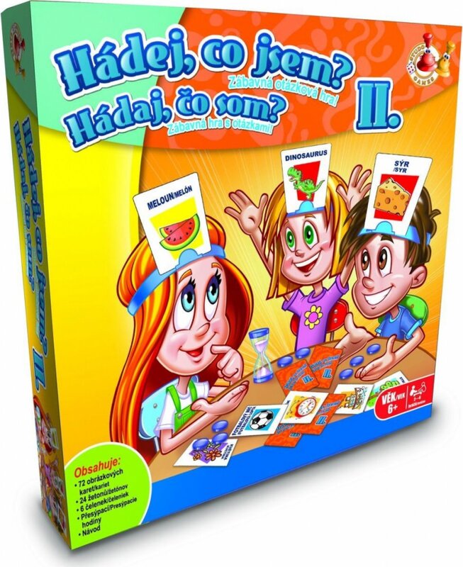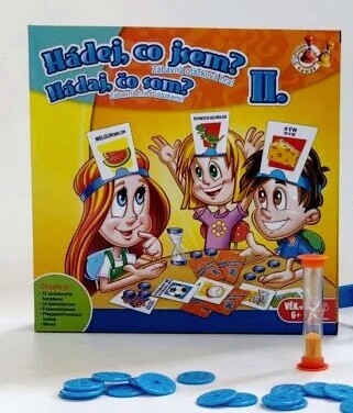 Spoločenská hra, kde hráči uplatnia bystrosť a schopnosť klásť správne otázky. Hráči sa majú za úlohu pýtať spoluhráčov s cieľom zistiť či majú vyžrebovanú na čele kartu so zvieraťom, jedlom alebo vyrobeným predmetom. Kto z hráčov prvý uhádne, kým sa v danom kole stal, ten víťaz.