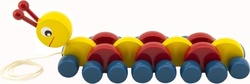 Popis produktu.Obľúbená drevená ťahacia hračka z dreva na kolieskach pre najmenšie deti, farebná húsenica na povrázku, ktorá pri ťahaní vlní, ako skutočná. Vyrobené v Česku.