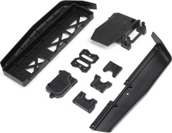 Náhradný diel pre RC model auta Team Losi Racing: 8XE 2.0 - lôžko batérií, držiak centrálneho diferenciálu, lôžko serva.