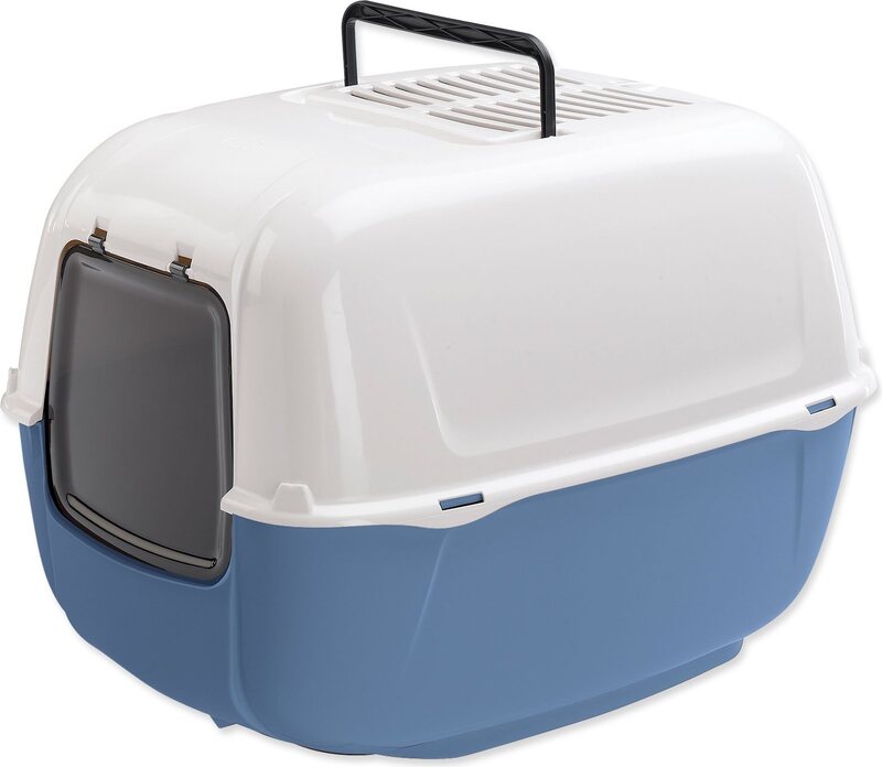 Plastová zaoblená toaleta s krytom, dvierkami a uhlíkovým filtrom.