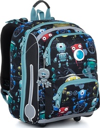 Hlavná charakteristika: váži 1 080 gramov má pevnú tvarovanú chrbtovú časť jedna komora s nepriepustným organizérom výškovo nastaviteľná hrudná pracka nastaviteľné ramenné popruhy konce ramenných popruhov sú vybavené magnetmi (pre ľahšie uchytenie vlajúcich koncov) blikačka reflexné prvky - na prednej strane a bokoch batohu, na ramenných popruhoch záter proti dažďu pevné dno z materiálu TOPDURA opatrené nožičkami batoh testovaný v ITC Zlín odnímateľná karabínka na kľúče pútko na zavesenie batohu na lavici pútko na prenášanie batohu v ruke BEBE je najmenší batoh v našej ponuke. Je to kompromis medzi aktovkou a školským batohom, ktorý sme vyvinuli špeciálne pre malé deti s výškou od 110 cm. O nadčasovosť dizajnu sa postará skupina robotov. Pretože čo iné s nastupujúcou robotizáciou môžeme dať na chlapčenský batoh?! Batoh má jednu veľkú komoru so žltým nepriepustným organizérom. Na prednej časti aktovky nájdete ďalšie dve praktické vrecká na zips s blikačkou. Vo vnútornom vrecku je menovka. Do horného vrecka sa zmestí aj peračník PENN 23011 v rovnakom dizajne alebo krabička na desiatu. Do bočných vreciek krásne sedia fľaštičky s objemom 0,5 litra, napr. naša ZIVA.Náš tip: Konce popruhov batohu sú opatrené magnetkami. Tie slúžia na pripnutie na polstrovanú časť ramenného popruhu. Tým sa zabráni tomu, aby voľné konce popruhov poletovali okolo tela dieťaťa.