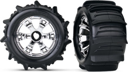 Kompletné kolesá. Chrómované disky Geode s lopatkovými pneumatikami pre RC modely áut v mierke 1:8 (2 ks v balení). Paddle tires-lopatkové pneumatiky sú vhodné do piesku, snehu alebo na jazdu po vodnej hladine.