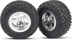 Kompletné zadné kolesá pre 2WD, predné aj zadné pre 4WD autá Traxxas Slash. Strieborné disky s nalepenými pneumatikami BFGoodrich® a vložkou.