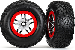 Traxxas koleso 2.2/3.0", disk SCT Split-Spoke strieborný-červený, pneu SCT (2)