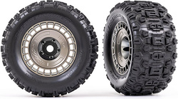 Traxxas kolo 3.8", pneu Sledgehammer, disk polomatný čierno chrómovaný s výmennou pokrievkou. 2 ks. Pneumatiky, vďaka inšpirácii motokrosom, poskytujú extrémnu trakciu a kontrolu nad modelom. Možnosť rôzneho offsetu s voliteľnou sadou #9567. Unášač 17 mm.