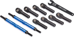 Modro eloxované ojničky riadenia Traxxas 8638X s koncovkami. Dĺžka na stred ôk koncoviek je 144 mm, vyrobené z vysokopevnostnej hliníkovej zliatiny 7075-T6. Na zníženie hmotnosti je vnútorná časť spojovačiek dutá. Balenie obsahuje 2 kusy spojovačiek, 8 koncoviek s guľovými čapmi a kľúč.