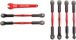 Náhradný diel pre RC model auta Traxxas 1:10: ojnička staviteľná hliníková 58/61mm červená (4+2).