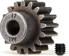 Traxxas pastorok na hriadeľ 5 mm so 17 zubami a modulom ozubenia 1 mm pre RC modely aut. Vyrobené z sintrovanej ocele. Súčasťou balenia je červík.