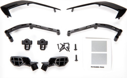 Traxxas spätné zrkadlá a rám nasávacích otvorov, vrátane držiakov z vnútornej strany karosérie a montážnych skrutiek. Náhradný diel pre model Traxxas C8 Stingray 1:10 RTR.
