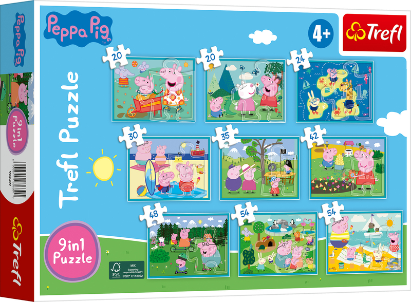 Tento úžasný set obsahuje 9 rôznych puzzle, ktoré sú ideálne pre malé deti. Každé puzzle je vyrobené z kvalitného, odolného materiálu a je navrhnuté tak, aby bolo bezpečné a zábavné. Motívy, inšpirované obľúbenými postavičkami z animovaného seriálu Prasiatko Peppa, zaručujú, že deti budú nadšené z každého svojho postaveného obrázku.