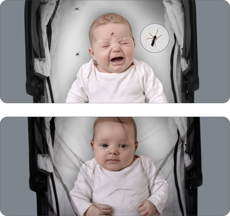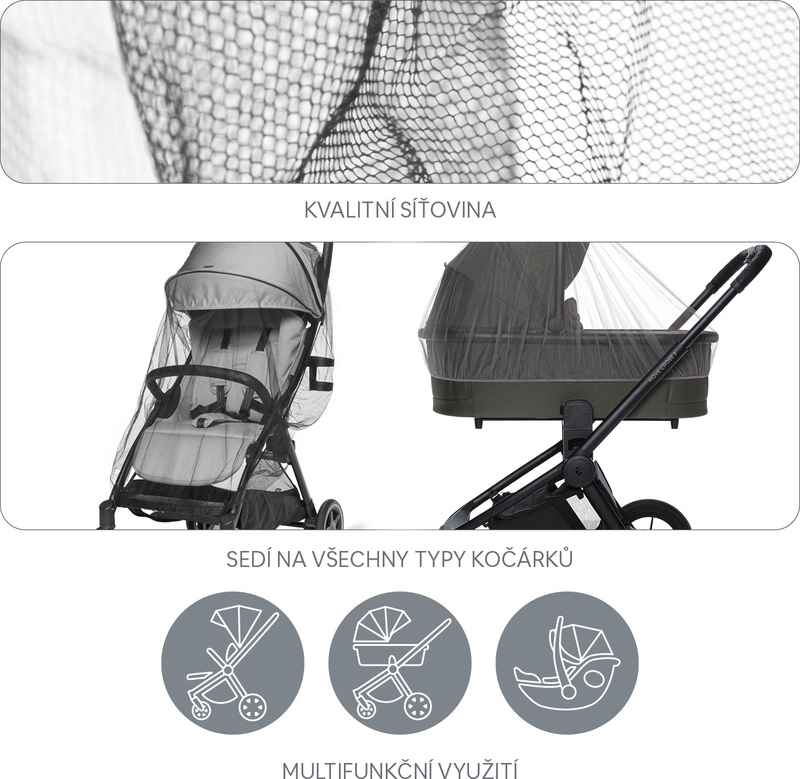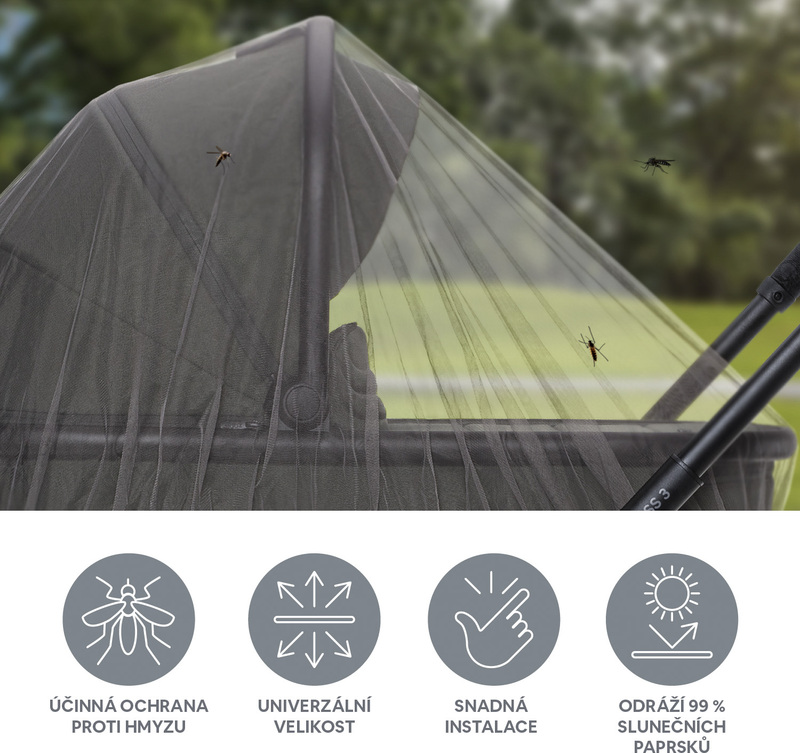 pomocou našej univerzálnej moskytiéry na kočík. Vďaka univerzálnej veľkosti je