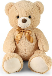 - Medveď vo veľkosti 78 cm je vyrobený z kvalitného hebučkého plyšu, má svetlo hnedú farbu a krk mu zdobí hnedá saténová mašľa.