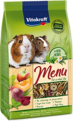 Kompletné krmivo pre zakrpatené králiky. Kŕmny návod: Pre 1 zviera podávajte denne približne 45-50 g (4 polievkové lyžice) krmiva plus seno. Zloženie: obilniny, vedľajšie produkty rastlinného pôvodu, zelenina, cukrová trstinová melasa, oleje a tuky, semená. Akostné znaky: proteíny 13%, vlhkosť 10%, oleje a tuky 3%, hrubé popoloviny 3%, vláknina 13,5%, vápnik 1%, fosfor 0,4%, vitamín A 6867 mj / kg, vitamín D3 781 mj / kg, vitamín E (alfatokoferol) 26,7 mg / kg, vitamín C 51mg / kg, vitamín B1 4 mg / kg, vitamín B2 5 mg / kg, vitamín B6 2,9 mg / kg, vitamín B12 9,4 mcg / kg, niacín 20,5 mg / kg, kyselina pantoténová 13,3 mg / kg, biotín 182 mj / kg, kyselina listová 2,6 mg / kg, cholín 104 mg / kg, meď 6,9 mg / kg.