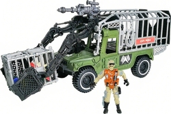 - prepravné auto s klietkou (voľné kolesá, v prednej časti je podávač lapených dinosaurov, rozmery 40x13x17 cm),