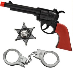 Staň sa šerifom na divokom západe a postaraj sa, aby žiadny zloduch neunikol zákonu! V balení nájdeš všetko, čo je potrebné na výbavu šerifa - pištol, putá a odznak!