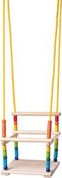 Hojdačka pre najmenšie deti je vyrobená z masívneho dreva. Je vybavená bezpečnostnou ohrádkou. Zdvihnutím prednej tyčky ohrádky sa dieťa ľahko dostane dovnútra aj von. Hojdačka má nastaviteľnú dĺžku lán. Je vhodná do interiéru aj exteriéru. Je určená pre zavesenie na bezpečnostné (najlepšie točivé) háky, ktoré však nie sú súčasťou balenia.Vyrovná sa uvoľnením šnúry. Maximální nosnost: 35 kg.