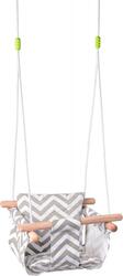 Komfortné, detská hojdačka pre najmenších, je tvorená masívnym, hladko brúseným dreveným rámom a textilným materiálom (100% bavlna) v šedom prevedení.