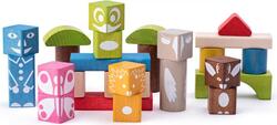 Klasická stavebnica z farebných drevených kociek. Kocky s potlačou umožňujú deťom ďalej rozvíjať hru s kockami, vytvárať z nich zvieratká, hrať s nimi rôzne úlohy.