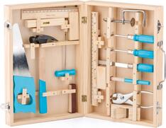 Poriadne náradie v drevenom boxe v prírodnej farbe ponúka malým kutilom 14 kusov náradia! Všetko je prakticky uložené v uzatvárateľnom kufríku a vďaka rúčke na hornej časti si môže malý kutil náradie nosiť so sebou kamkoľvek.