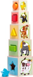 Kocky sa dajú skladať na seba i do seba a majú niekoľko funkcií. Každá kocka obsahuje otvor, do ktorého sa vkladá kocka príslušného tvaru a farby. Na ďalších stenách sú obrázky s počtom zvieratiek a to odpovedá číslici a na vedľajšej strane kocky.