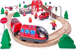 Woody Vláčiková dráha s elektrickou lokomotívou, hasiči, 60 dielov