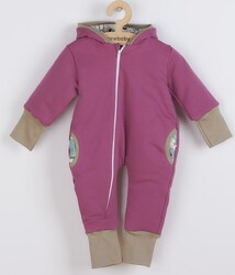 Zateplený jarný overal s kapucňou New Baby Spring purple-pink 56 (0-3m)