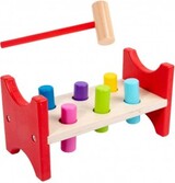 Klasická drevená zatĺkačka s farebnými štipcami a pevným kladivkom prináša deťom veľa zábavy a zároveň rozvíja ich motoriku, koordináciu ruky a oka aj silu úchopu.